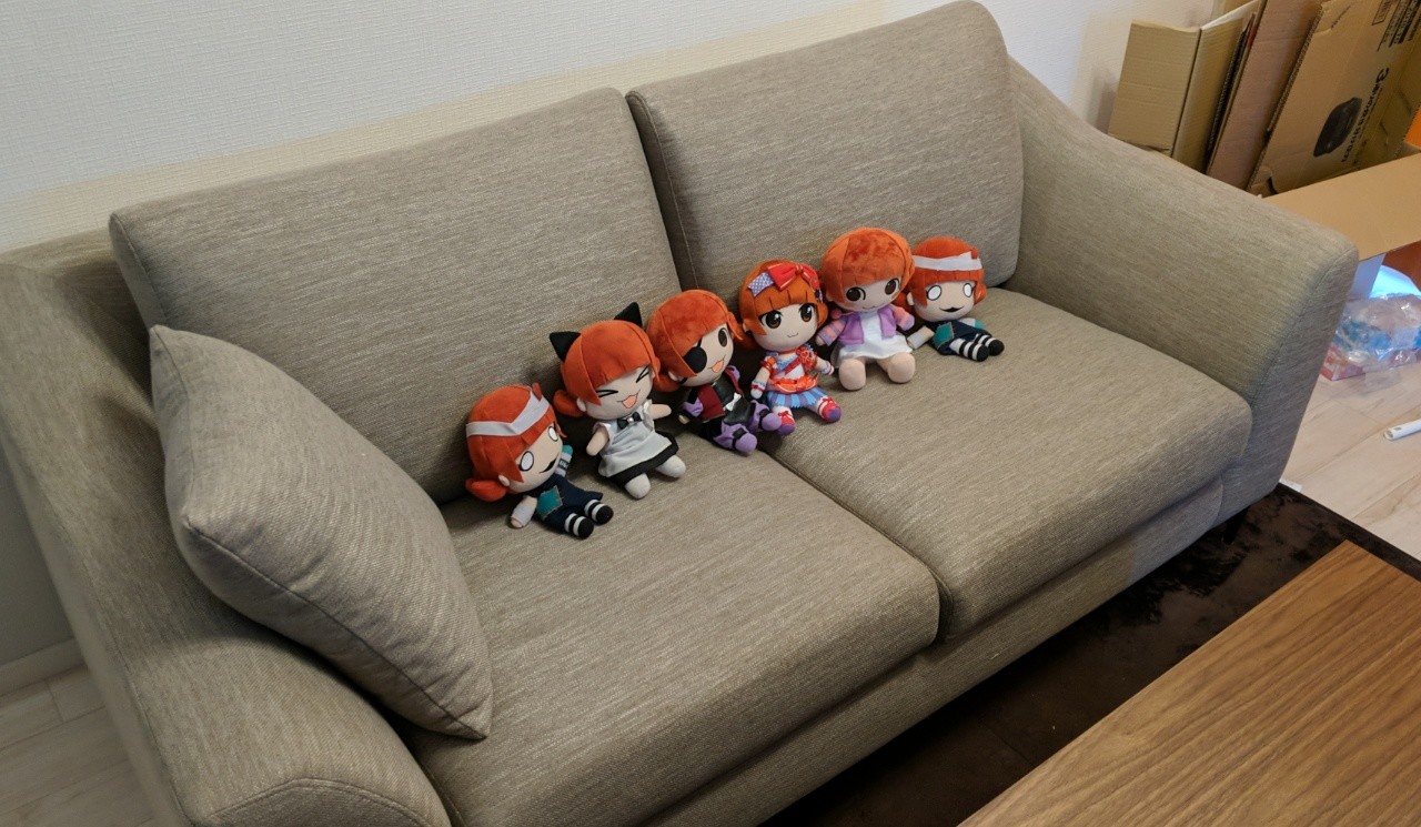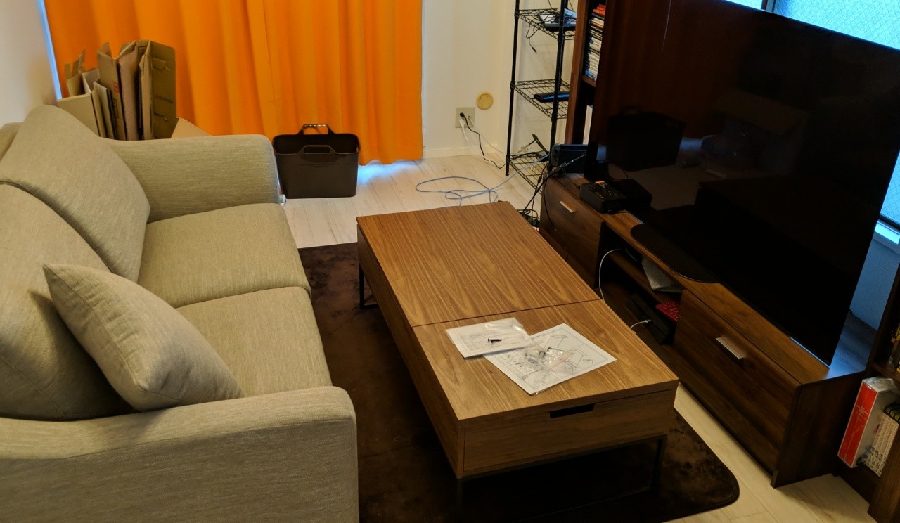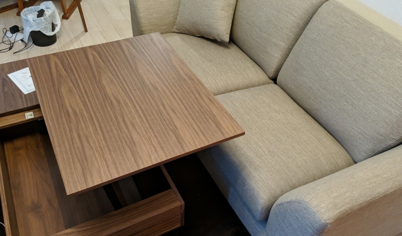 さっきテーブルとソファが届いたよ