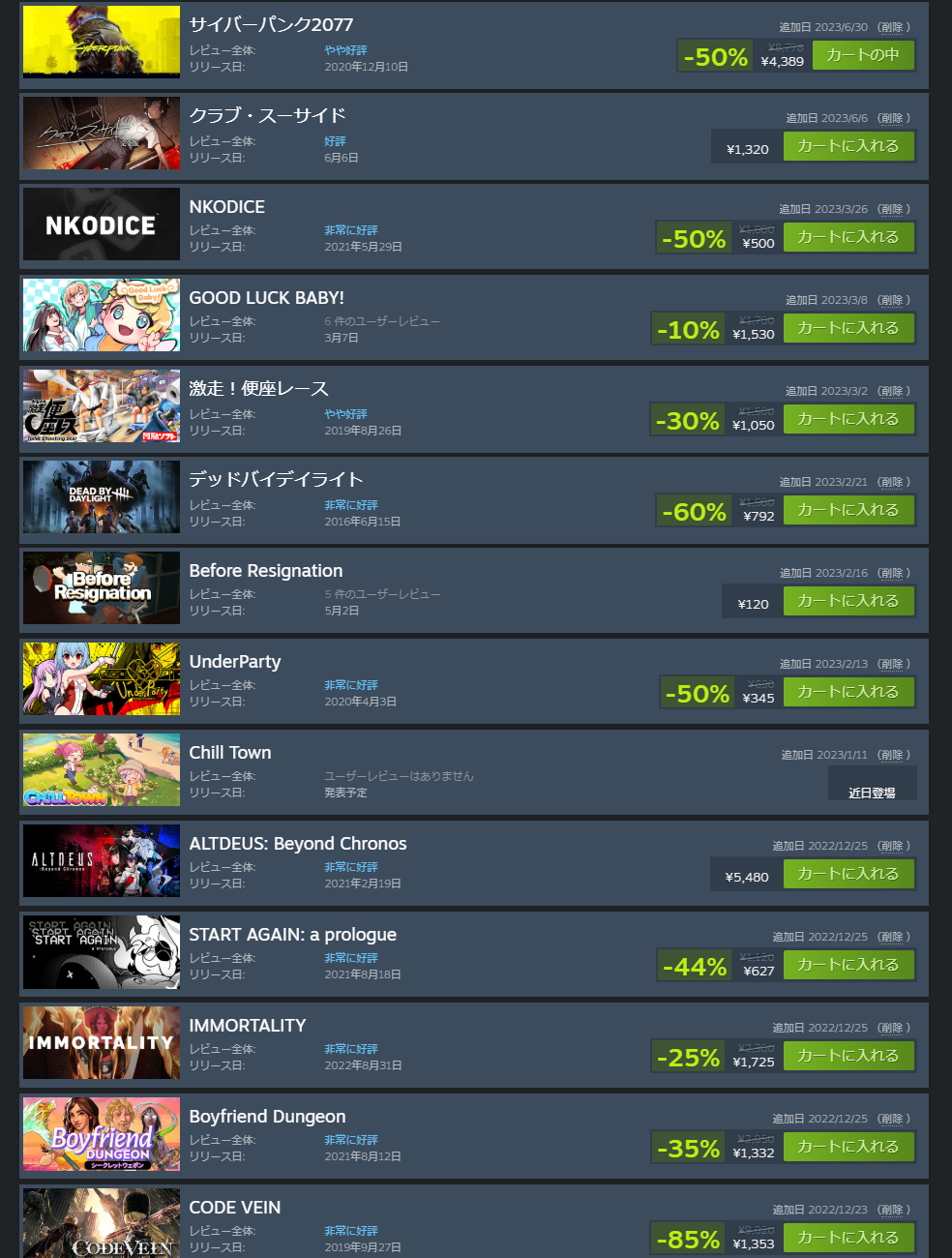 ウィッシュリスト見なければよかった